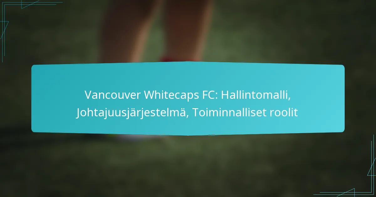 Vancouver Whitecaps FC:n johtamistruktuuri koostuu hyvin määritellystä hierarkiasta, joka sisältää johtajaroolit, ylimmän johdon ja operatiiviset tiimit. Tämä hallintomalli varmistaa tehokkaan päätöksenteon ja strategisen suunnan seuralle, vaikuttaen sen kokonaissuoritukseen ja kulttuuriin.